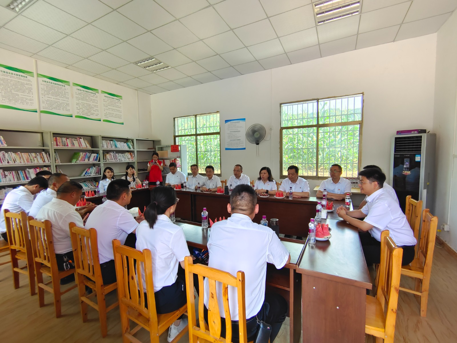 隨后,全體黨員驅(qū)車前往幫扶地永光鎮(zhèn)龍頭村開展聯(lián)建共建活動(dòng),雙方黨支部圍繞支部中心內(nèi)容進(jìn)行了座談交流。龍頭村黨總支書記胡珺就本村產(chǎn)業(yè)發(fā)展、黨員管理、基層治理等內(nèi)容進(jìn)行介紹,川投國際黨支部書記廖彬圍繞公司發(fā)展歷程、黨建特色亮點(diǎn)等內(nèi)容進(jìn)行介紹,并指出,托底性幫扶是一項(xiàng)重大政治任務(wù),更是踐行國企擔(dān)當(dāng)和社會(huì)責(zé)任的重要體現(xiàn),希望在集團(tuán)黨委與儀隴縣委的共同領(lǐng)導(dǎo)下,通過結(jié)對(duì)幫扶與聯(lián)建共建加強(qiáng)交流合作,共同書寫企地合作新篇章。會(huì)后,廖彬走訪慰問了村中的老黨員及困難黨員,并送上夏季消暑慰問品。