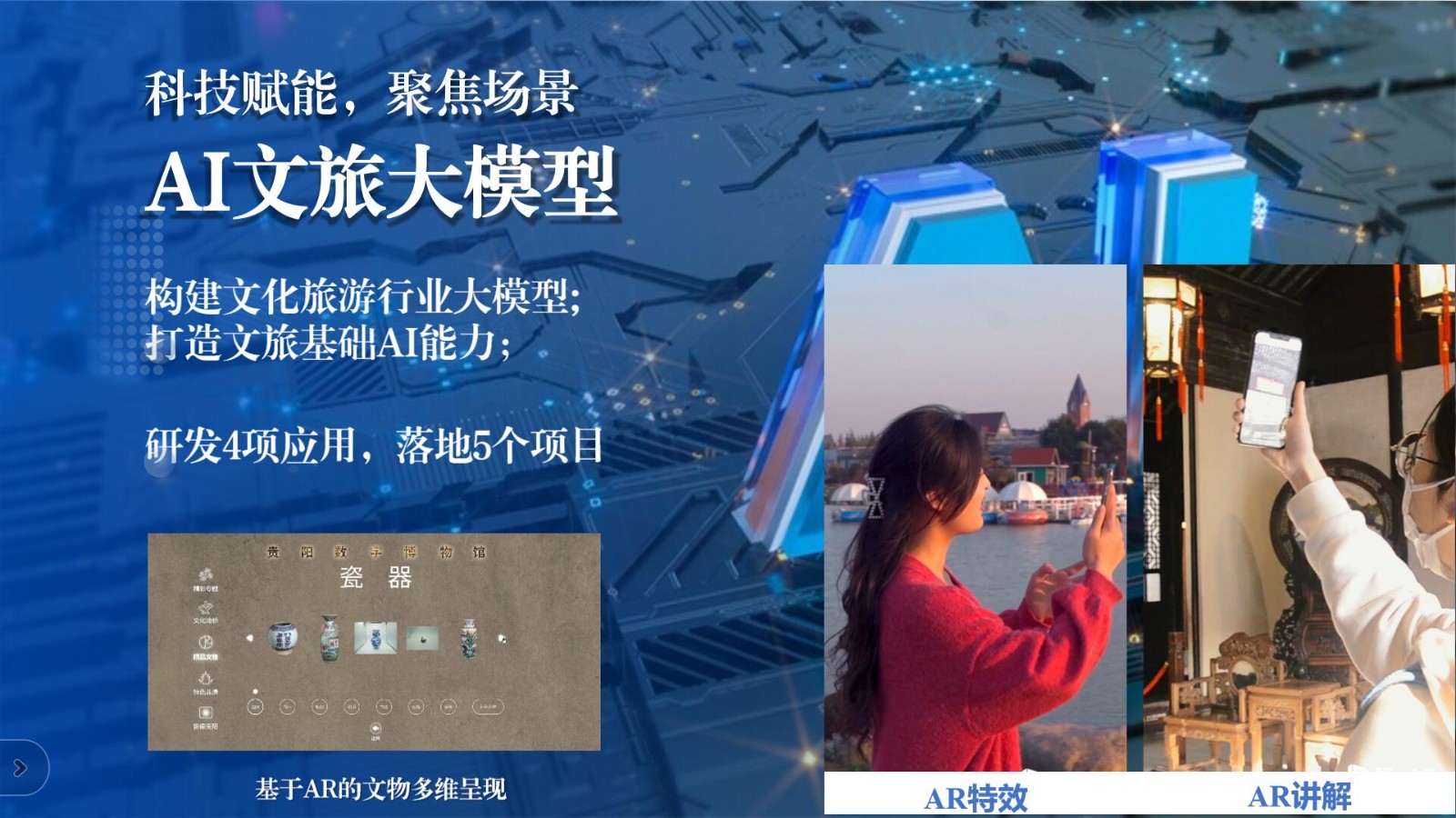 智勝集成視覺融合場(chǎng)景體驗(yàn)文化和旅游部技術(shù)創(chuàng)新中心相關(guān)負(fù)責(zé)人介紹了公司的基本情況和主營(yíng)業(yè)務(wù),特別強(qiáng)調(diào)了公司在政企數(shù)字化和智慧文旅領(lǐng)域的核心競(jìng)爭(zhēng)力,展示了技術(shù)創(chuàng)新中心在視覺融合技術(shù)、文旅大模型以及人工智能方面的應(yīng)用和建設(shè)成果。此外,他還分享了公司在智慧景區(qū)、世界文化遺產(chǎn)監(jiān)測(cè)等方面的業(yè)務(wù)布局和發(fā)展計(jì)劃,提出了通過(guò)慧旅云平臺(tái)來(lái)培育新質(zhì)生產(chǎn)力,通過(guò)數(shù)字化手段提升國(guó)有企業(yè)管理和服務(wù)效率的策略方案。