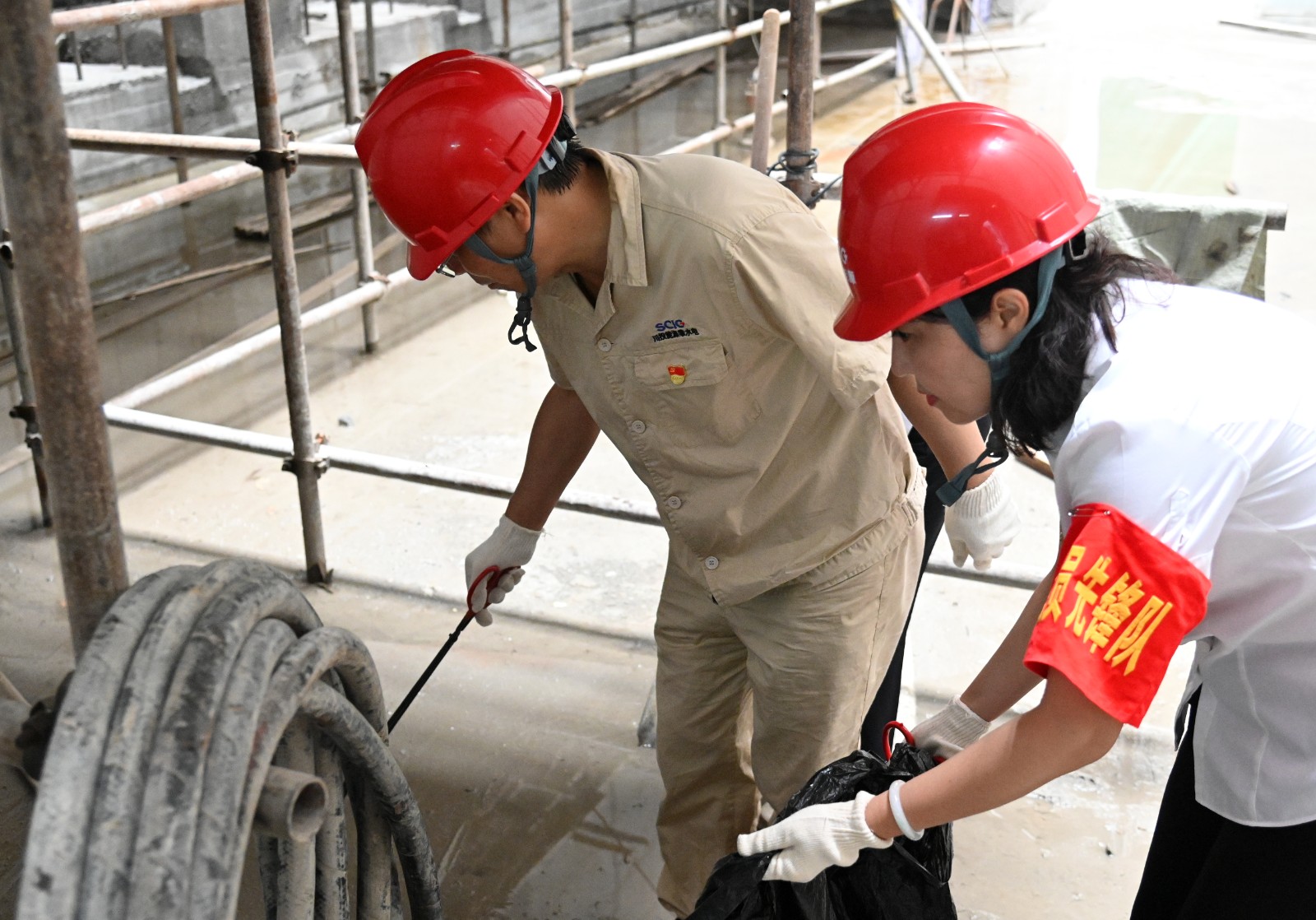 大家來到銀江水電站壩頂施工通道,對(duì)現(xiàn)場(chǎng)吊裝點(diǎn)及各施工作業(yè)面衛(wèi)生清潔區(qū)域進(jìn)行了清掃分工,各支部黨員同志沖鋒在前,主動(dòng)帶領(lǐng)其他黨員同志、志愿者對(duì)銀江水電站壩頂、壩頂至安裝間通道、安裝間、副廠房等區(qū)域進(jìn)行了衛(wèi)生清掃、垃圾清運(yùn),并協(xié)調(diào)了臨時(shí)堆放物資、安裝構(gòu)建的整理吊裝等,為后期轉(zhuǎn)子支架到達(dá)現(xiàn)場(chǎng)營(yíng)造了整潔、便捷的環(huán)境。