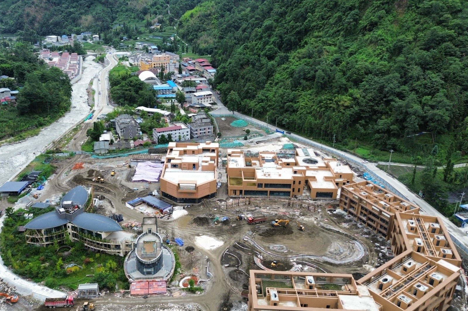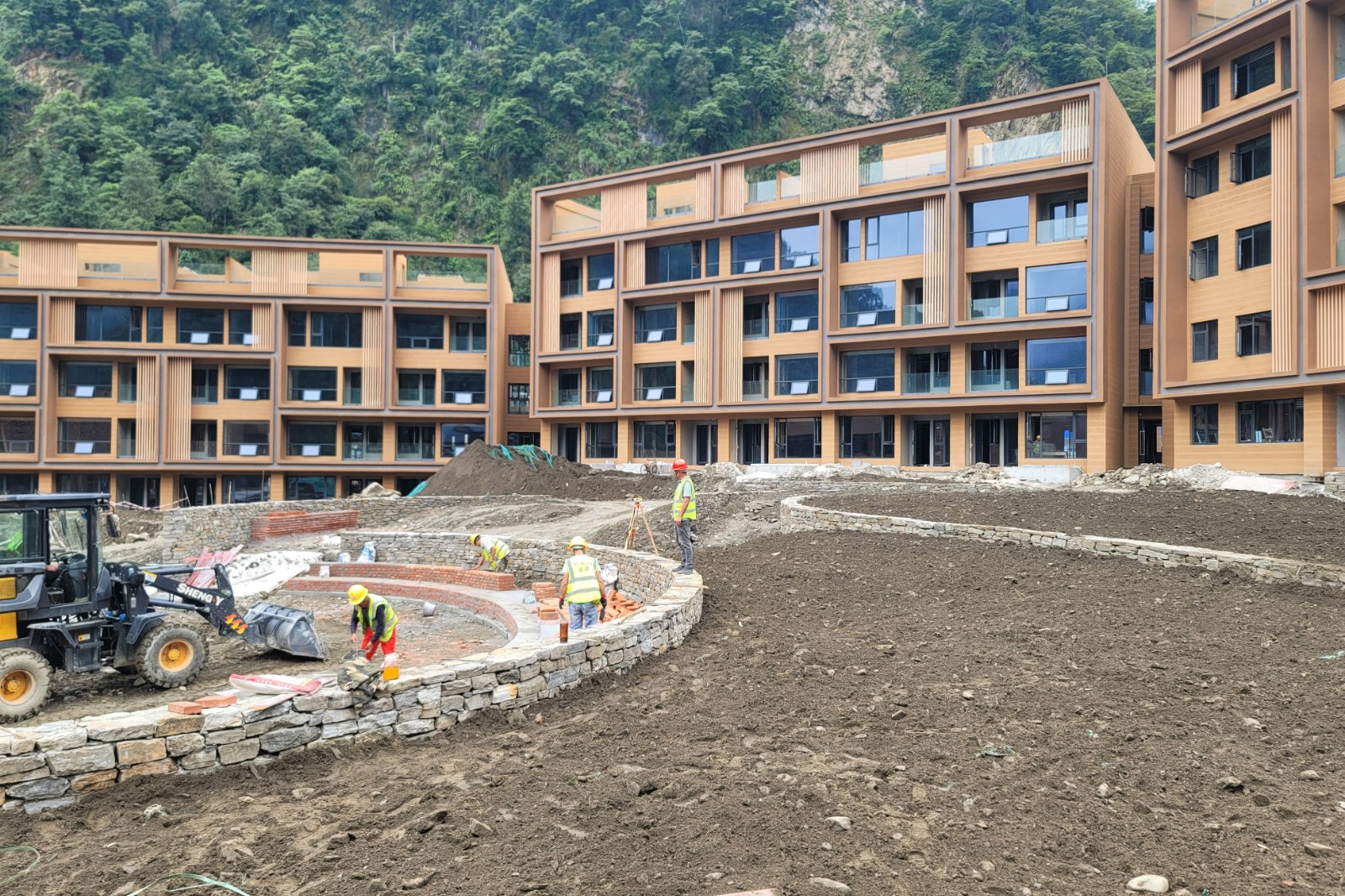 草科溫泉特色小鎮(zhèn)一期項(xiàng)目計(jì)劃總投資3.45億元,目前已實(shí)現(xiàn)投資約2.1億元,共投入建設(shè)人力1000余人,各類機(jī)械150余臺(tái)。截至6月30日,項(xiàng)目一期土建(含一次機(jī)電)工程已完成竣工預(yù)驗(yàn)收,災(zāi)后重建排水溝項(xiàng)目、中庭臺(tái)地花園喬木栽植已全部完成,總平景觀施工初步形成整體輪廓,室內(nèi)裝修基層施工、管網(wǎng)安裝等即將告捷。