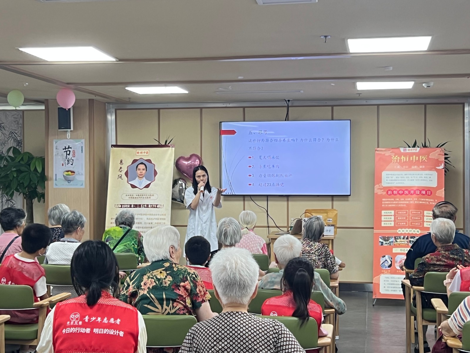 武侯青年志愿者們與治恒中醫(yī)館的中醫(yī)老師以“三伏天健康知識(shí)小講堂”的特色形式,為院內(nèi)在住長(zhǎng)者講授了夏日防暑降溫常識(shí)及注意事項(xiàng)。針對(duì)長(zhǎng)者夏季易發(fā)、常見疾病,中醫(yī)老師們也進(jìn)行了針對(duì)性防護(hù)防范措施講解及演示,讓廣大長(zhǎng)者了解掌握了炎夏如何進(jìn)行“科學(xué)避暑、有效降溫”。