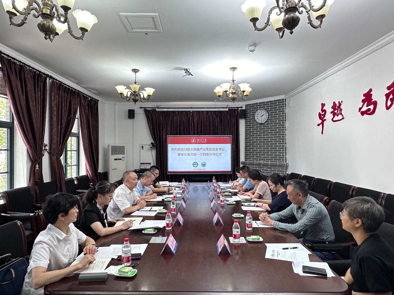 8月29日,川投大健康產(chǎn)業(yè)集團(tuán)黨委書記、董事長魯洪斌率隊(duì)赴四川大學(xué)華西公共衛(wèi)生學(xué)院(華西第四醫(yī)院)座談交流,川投大健康產(chǎn)業(yè)集團(tuán)黨委副書記、總經(jīng)理周家超,副總經(jīng)理?xiàng)钶W舫參加會(huì)議。