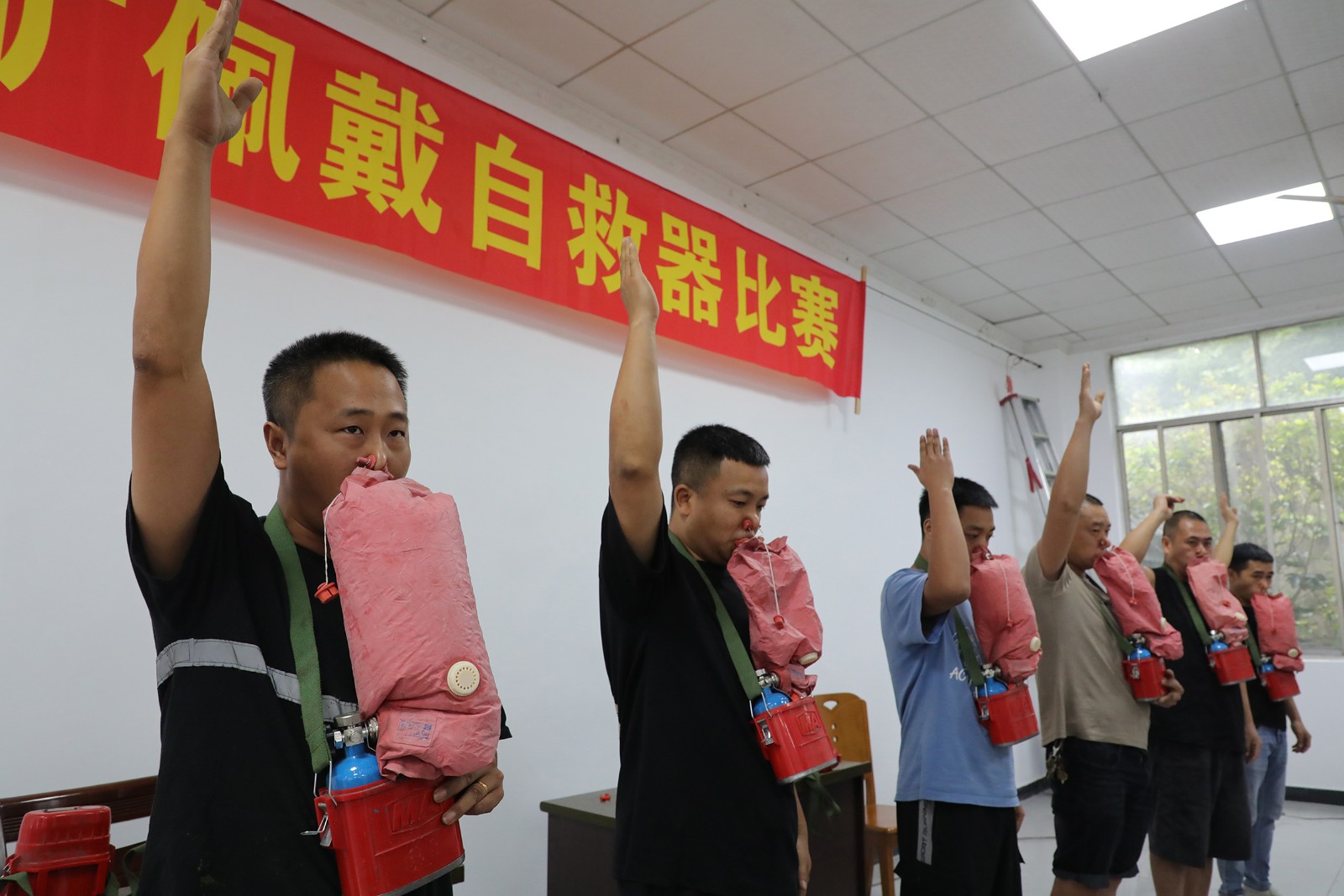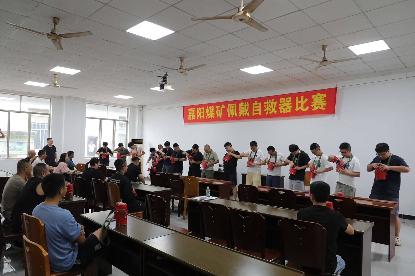 “預備,開始!”隨著裁判一聲令下,嘉陽煤礦的16名管理人員迅速投入緊張有序的自救器佩戴比賽中。9月25日,一場別開生面的隔絕式壓縮氧自救器實操比賽在嘉陽煤礦機電隊會議室拉開戰(zhàn)幕,全礦27名井下工作者齊聚一堂,共同角逐“高效自救者”稱號。