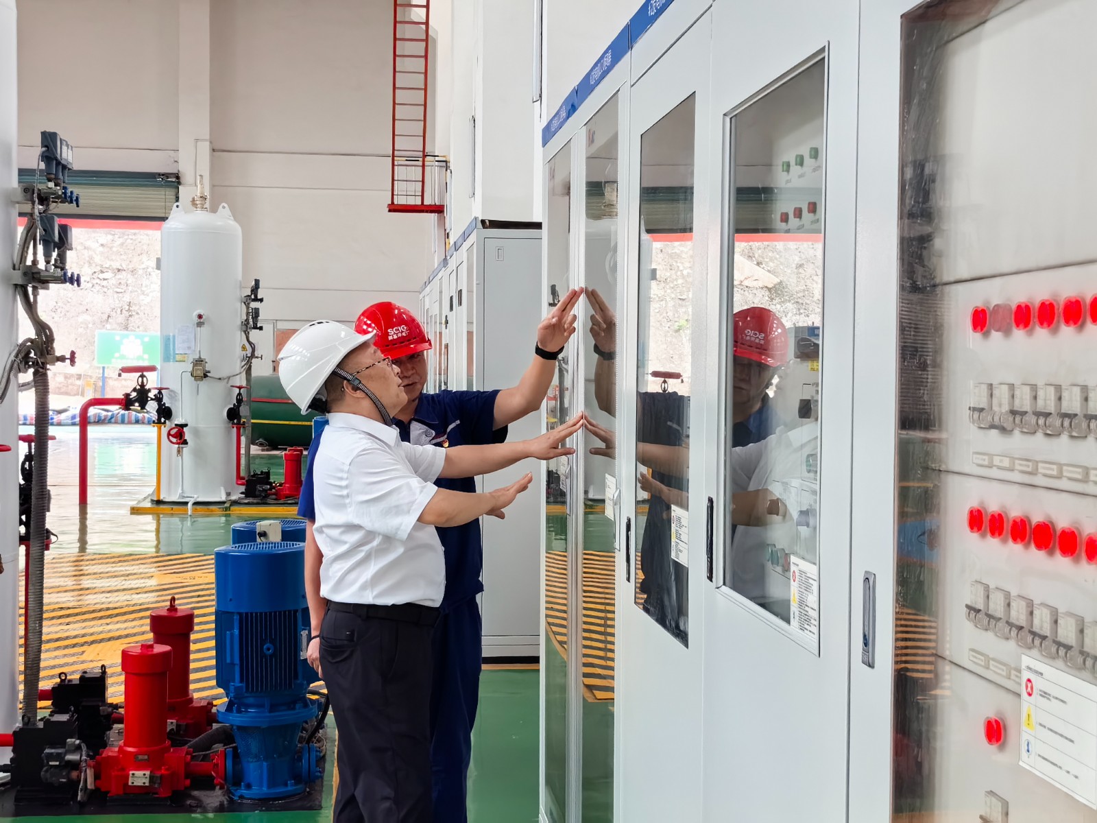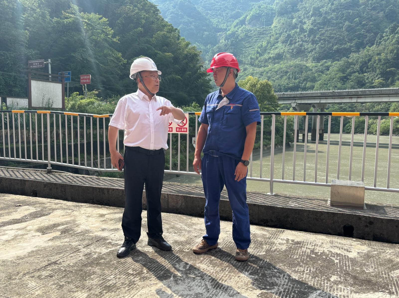 蔡承德一行深入廠房、大壩等一線生產(chǎn)區(qū)域,仔細查看電廠生產(chǎn)設(shè)備、防汛設(shè)施的運行狀況,抽查電廠防汛值班的落實情況。在檢查過程中,蔡承德特別強調(diào)防汛減災(zāi)工作的重要性,要求電廠嚴(yán)格落實防洪搶險措施,加強值班值守,確保迅速響應(yīng)、有效處置。同時,還詢問電廠對有限空間作業(yè)、高風(fēng)險區(qū)域作業(yè)等特殊作業(yè)的風(fēng)險防控措施,要求電廠必須嚴(yán)格遵守相關(guān)安全規(guī)程,確保作業(yè)人員的安全。