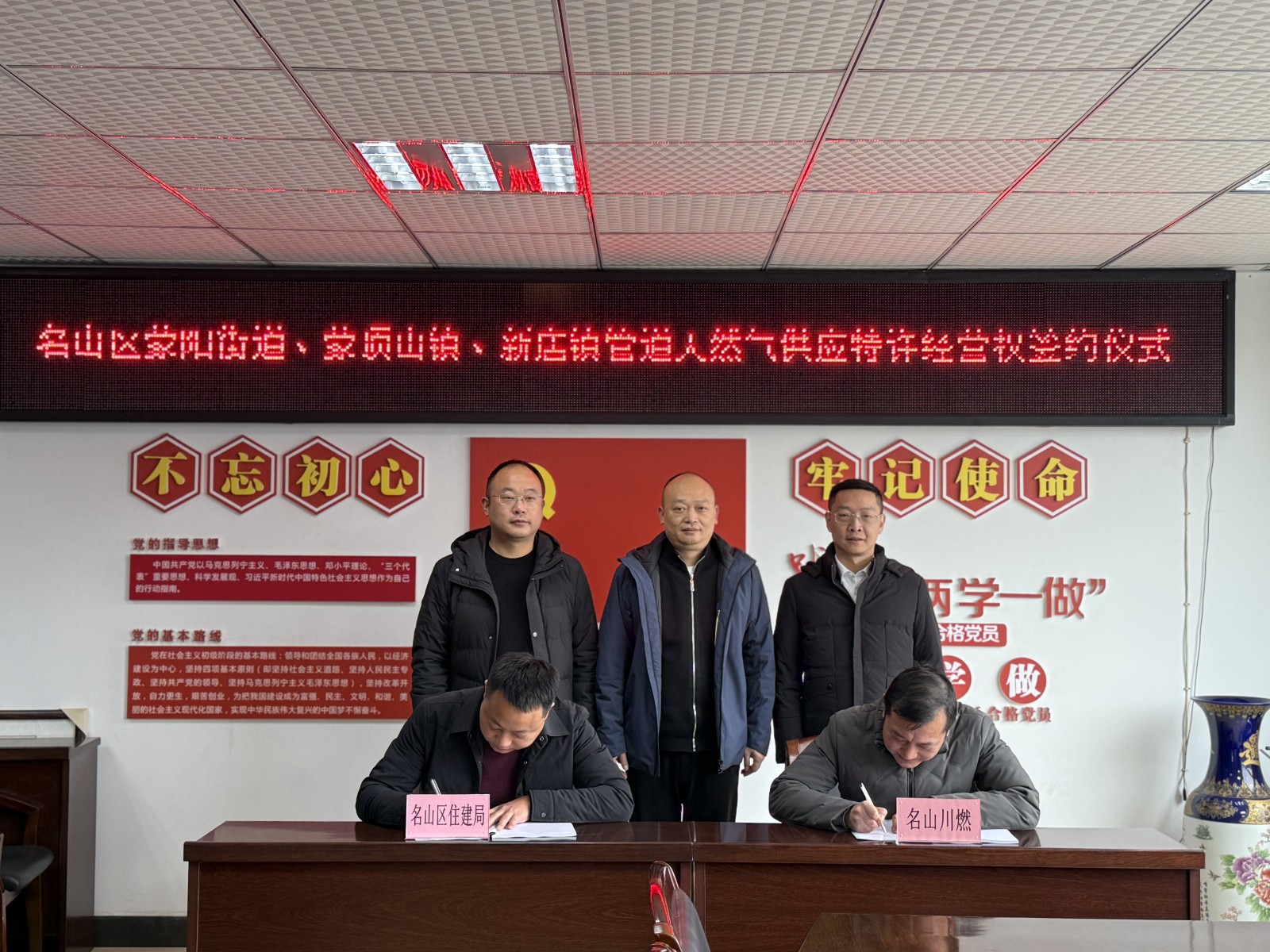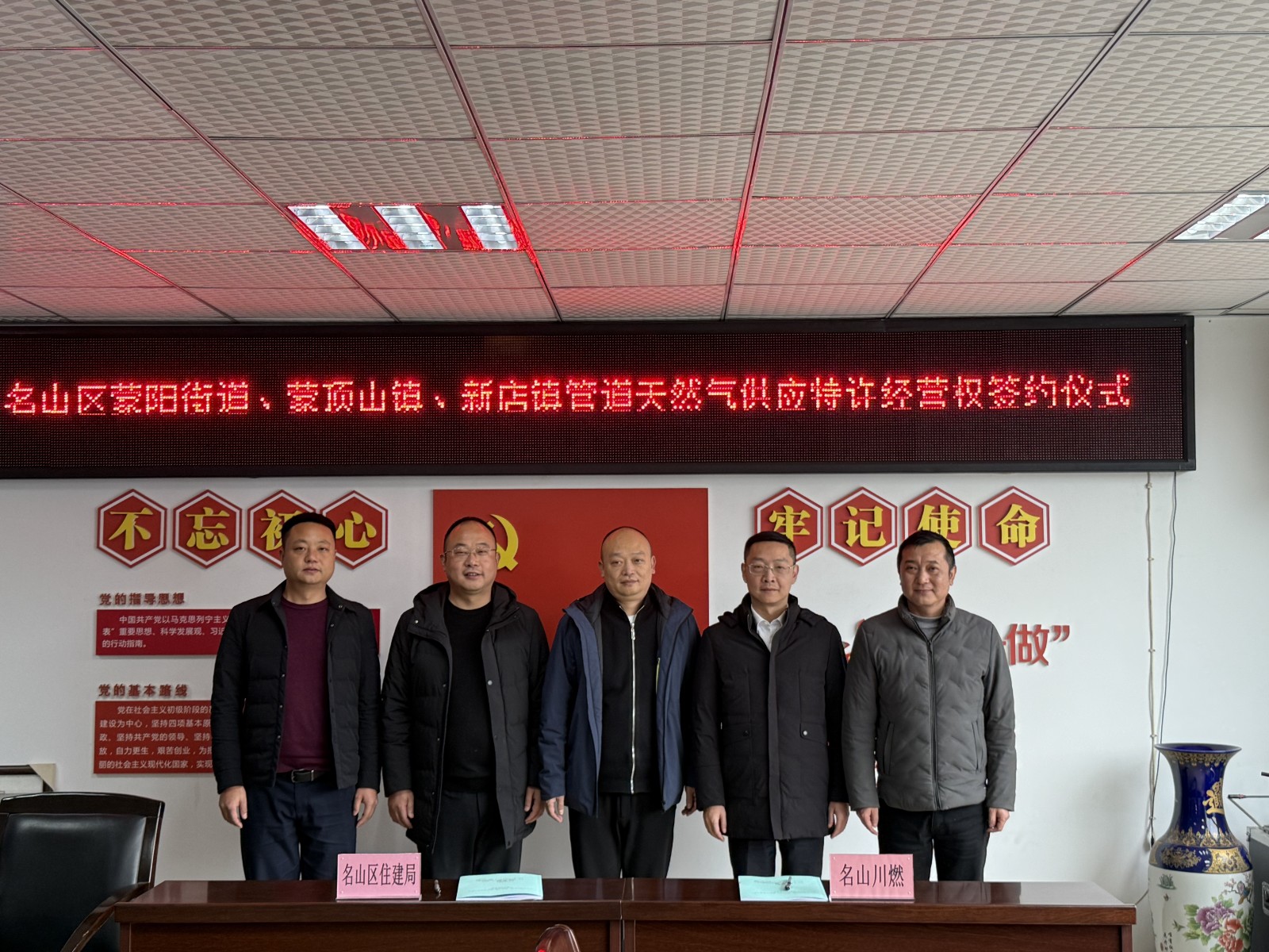 12月18日,名山區(qū)蒙陽街道、蒙頂山鎮(zhèn)、新店鎮(zhèn)管道天然氣供應(yīng)特許經(jīng)營權(quán)簽約儀式在名山區(qū)住房和城鄉(xiāng)建設(shè)局舉行。名山區(qū)人民政府黨組成員、副區(qū)長譚慶,名山區(qū)住房和城鄉(xiāng)建設(shè)局黨委書記秦超俊,名山區(qū)住房和城鄉(xiāng)建設(shè)局局長彭亞雄,川投燃電黨委副書記、總經(jīng)理鄧銳,名山川燃黨支部書記、董事王鎮(zhèn)出席了簽約儀式。