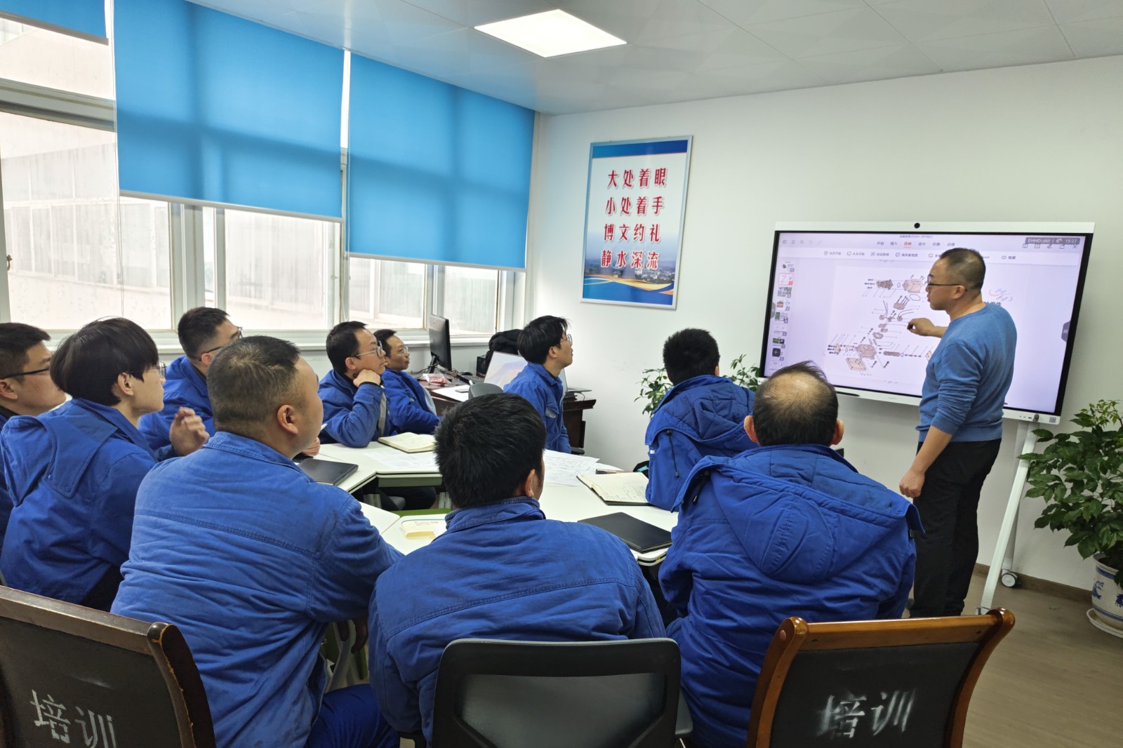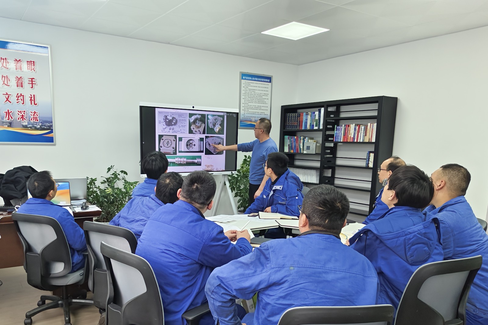 培訓中,主講人憑借深厚的專業(yè)知識與豐富的實踐經(jīng)驗,深入剖析了汽輪機調速系統(tǒng)的工作原理、保護、試驗、設備結構特點等,并結合實際案例,詳細講解了日常維保要求、常見故障的診斷及如何快速定位故障點的方法。借助多媒體設備,主講人將復雜的油路原理圖變得一目了然,使得培訓內(nèi)容更易理解及接受。培訓期間,參加人員積極互動,達到預期的培訓效果。