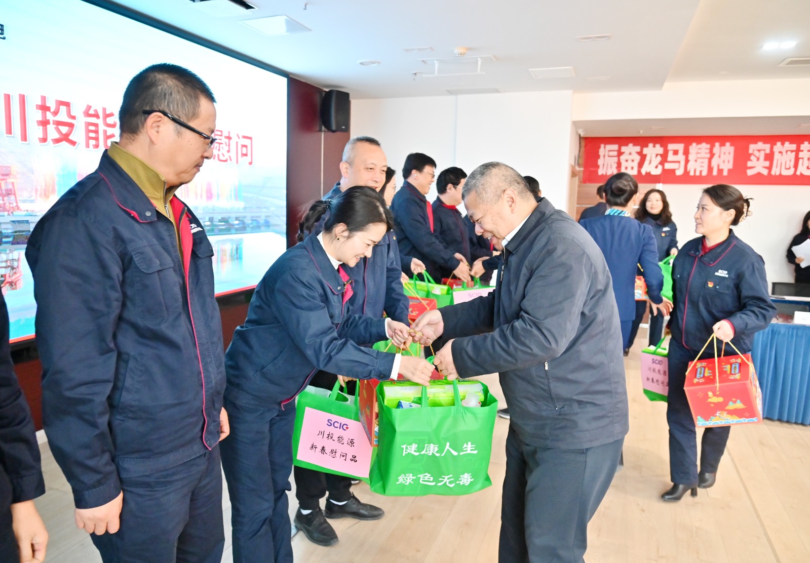 考核結(jié)束后開展了“送溫暖”慰問活動,楊洪一行慰問銀江水電站工程建設一線的職工,并為他們送上了新春大禮包、日用品等,鼓勵大家要以首臺機組投產(chǎn)發(fā)電為新的起點,推進后續(xù)工程建設和機組安裝調(diào)試,努力實現(xiàn)2025年全面投產(chǎn)發(fā)電目標,為公司高質(zhì)量發(fā)展作出更大貢獻。
