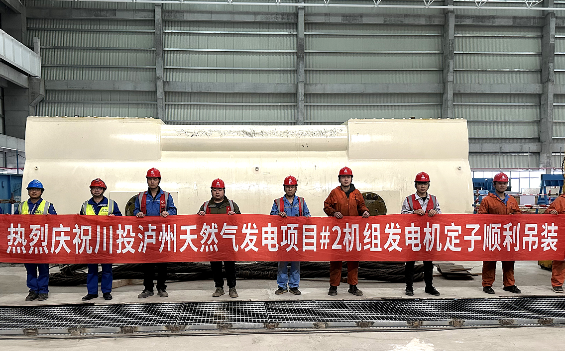 1月13日,川投瀘州天然氣發(fā)電項(xiàng)目2號(hào)發(fā)電機(jī)定子歷經(jīng)4天精心操作后成功就位,發(fā)電機(jī)定子吊裝圓滿完成。
