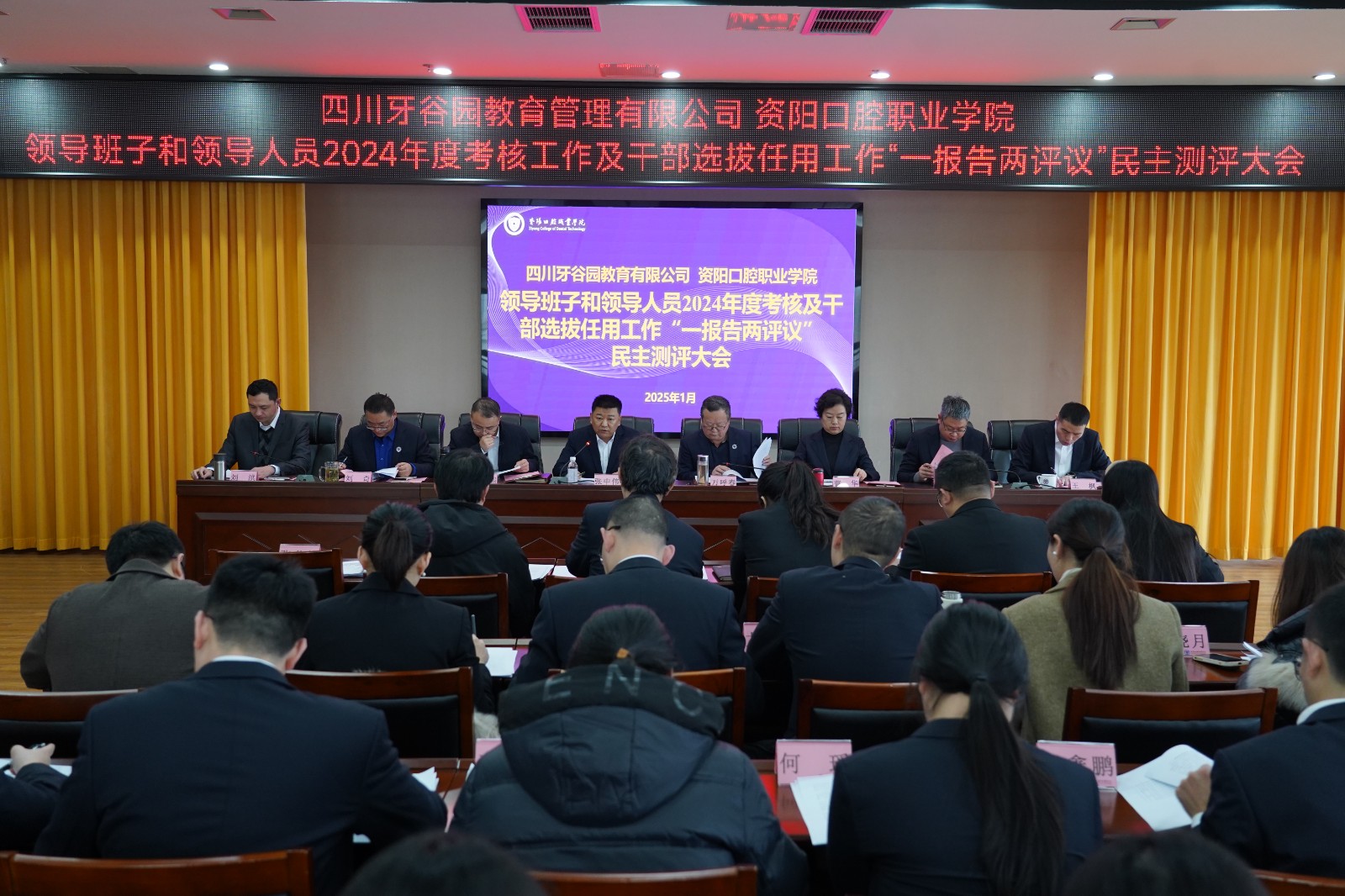 近日,四川牙谷園教育管理有限公司、資陽口腔職業(yè)學(xué)院領(lǐng)導(dǎo)班子和領(lǐng)導(dǎo)人員2024年度考核工作及干部選拔任用工作“一報(bào)告兩評(píng)議”民主測(cè)評(píng)大會(huì)召開。