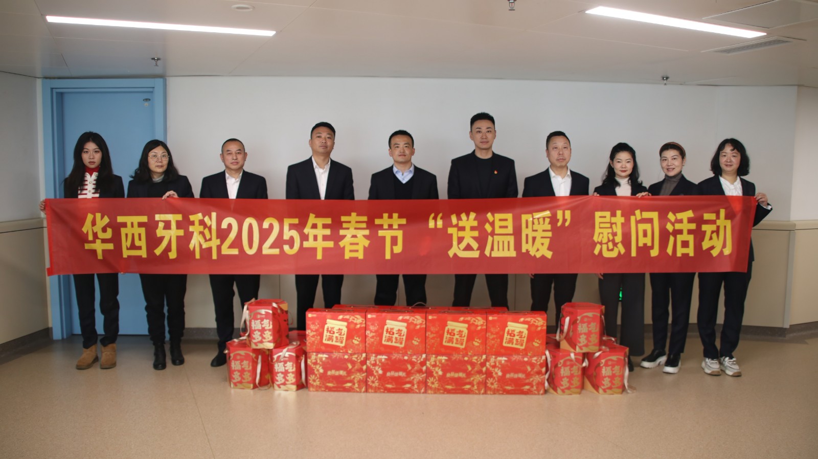 鄧云斌首先代表華西牙科對天府華西牙科全體員工過去一年的辛勤付出表示衷心感謝,并向堅守在一線的工作人員送上節(jié)日問候與祝福。隨后,鄧云斌為員工們發(fā)放了慰問物資。