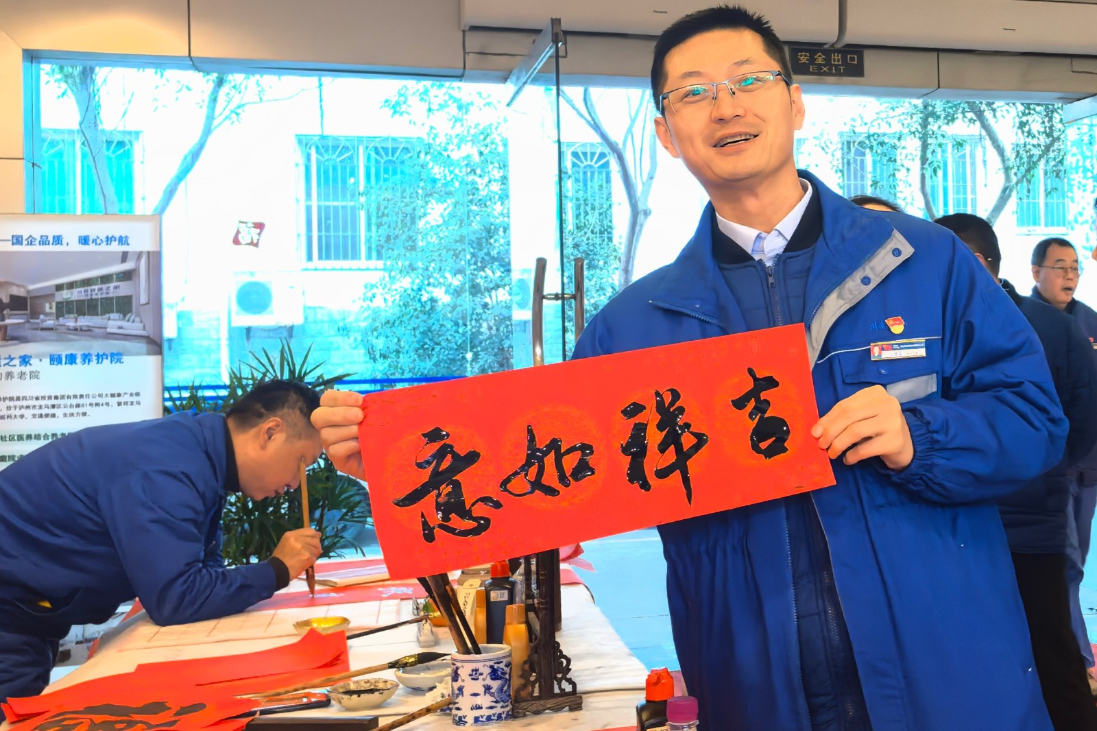 “喜居寶地千年旺,福照家門萬事興”,活動中,書法家們不僅免費為職工群眾揮毫潑墨,還貼心地根據(jù)職工的個人喜好和要求,量身定制專屬春聯(lián)。不一會兒,一幅幅飽含濃郁年味的春聯(lián)就擺滿了桌面。職工們手捧著剛寫好、墨香未散的“?!弊峙c春聯(lián),臉上綻放出燦爛的笑容,眼神中滿是對書法藝術(shù)的由衷贊嘆,以及對新春佳節(jié)的熱切期盼。