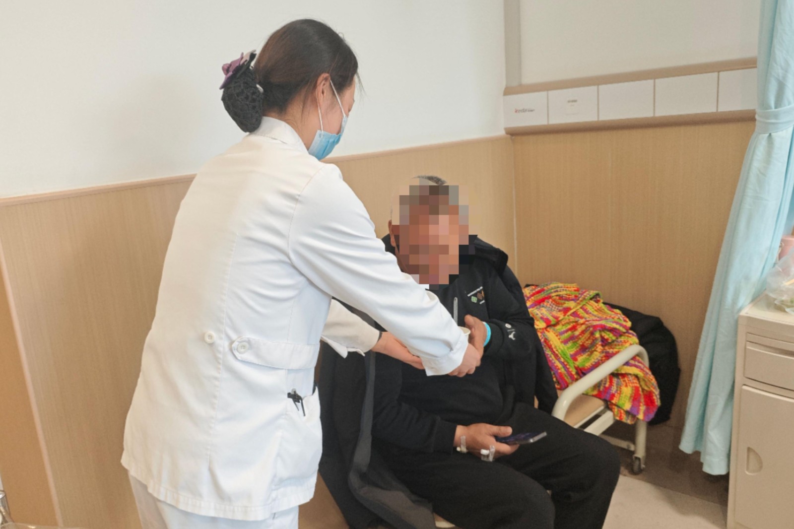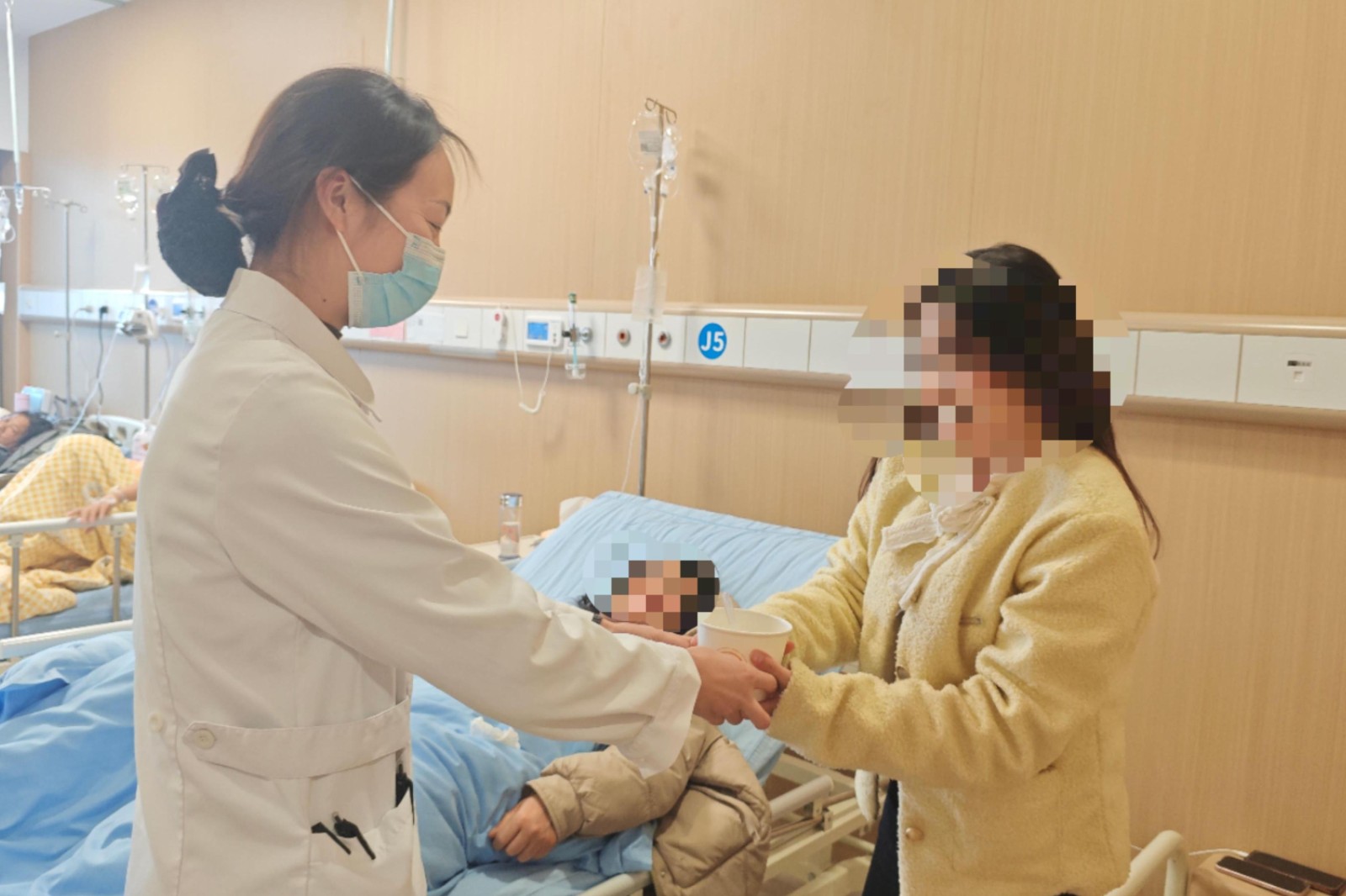 活動(dòng)當(dāng)天,醫(yī)院食堂內(nèi)歡聲笑語不斷。醫(yī)護(hù)人員化身“巧手師傅”,揉面、調(diào)餡、搓圓,將傳統(tǒng)節(jié)日的儀式感融入每一個(gè)步驟。隨著元宵出鍋,各科室代表有序領(lǐng)取,并分送至門診、病房及行政區(qū)域。在病房內(nèi),護(hù)士將元宵送至患者床前,輕聲道:“元宵節(jié)快樂!吃了這碗元宵,愿您早日康復(fù)?!被颊邚埌⒁探舆^碗:“住院還能吃到你們親手包的元宵,心里真暖!”在病房內(nèi)等待的患者家屬劉大哥接過醫(yī)護(hù)人員遞去的元宵說:“大年十五在醫(yī)院過,本來有點(diǎn)心情低落,沒想到你們這么周到!”這場跨越崗位與病房的暖心互動(dòng),讓醫(yī)患情誼在節(jié)日氛圍中悄然升溫。