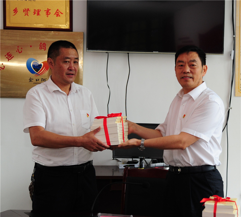 專題黨課結(jié)束后,鄧凱副書記向曙光村全體黨員送上了《習(xí)近平新時代中國特色社會主義思想學(xué)習(xí)綱要》《習(xí)近平關(guān)于“不忘初心、牢記使命”重要論述選編》等學(xué)習(xí)資料,鼓勵他們先學(xué)一步、多學(xué)一點、學(xué)深一層。