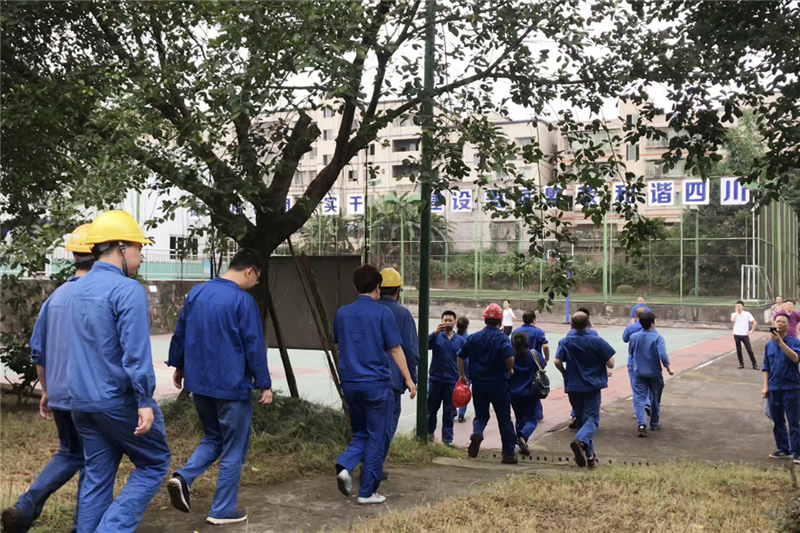 本次演練以“瀘州周邊發(fā)生地震災害并波及到公司,且對公司生產(chǎn)和職工生活造成影響”為場景。公司值班安保人員發(fā)現(xiàn)地震險情后,第一時間用擴音器對生活區(qū)宿舍樓發(fā)出警示,提醒大家地震來襲,盡快避險。宿舍樓內(nèi)職工聽到警報后,迅速轉移到安全區(qū)域避險。公司抗震指揮部隨即成立,第一時間向上級主管部門報告地震災情,并下達啟動地震應急預案命令,及時搜集掌握有關情報信息;緊急避險組、安全疏散組、醫(yī)療救護組、人員搜救組、災情調(diào)查組、后勤保障組同時成立并迅速開展行動,投入到緊張的災情偵查、緊急救援、后勤保障等工作中去。