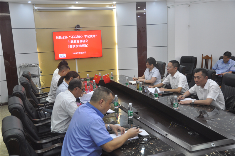 7月26日,川投水務黨委副書記、總經理鄧銳帶領安全環(huán)保部經理馬玉彬、生產技術部經理王鎮(zhèn)到射洪水司開展“不忘初心、牢記使命”主題調研,與射洪水司領導班子及各部門負責人進行交流座談。