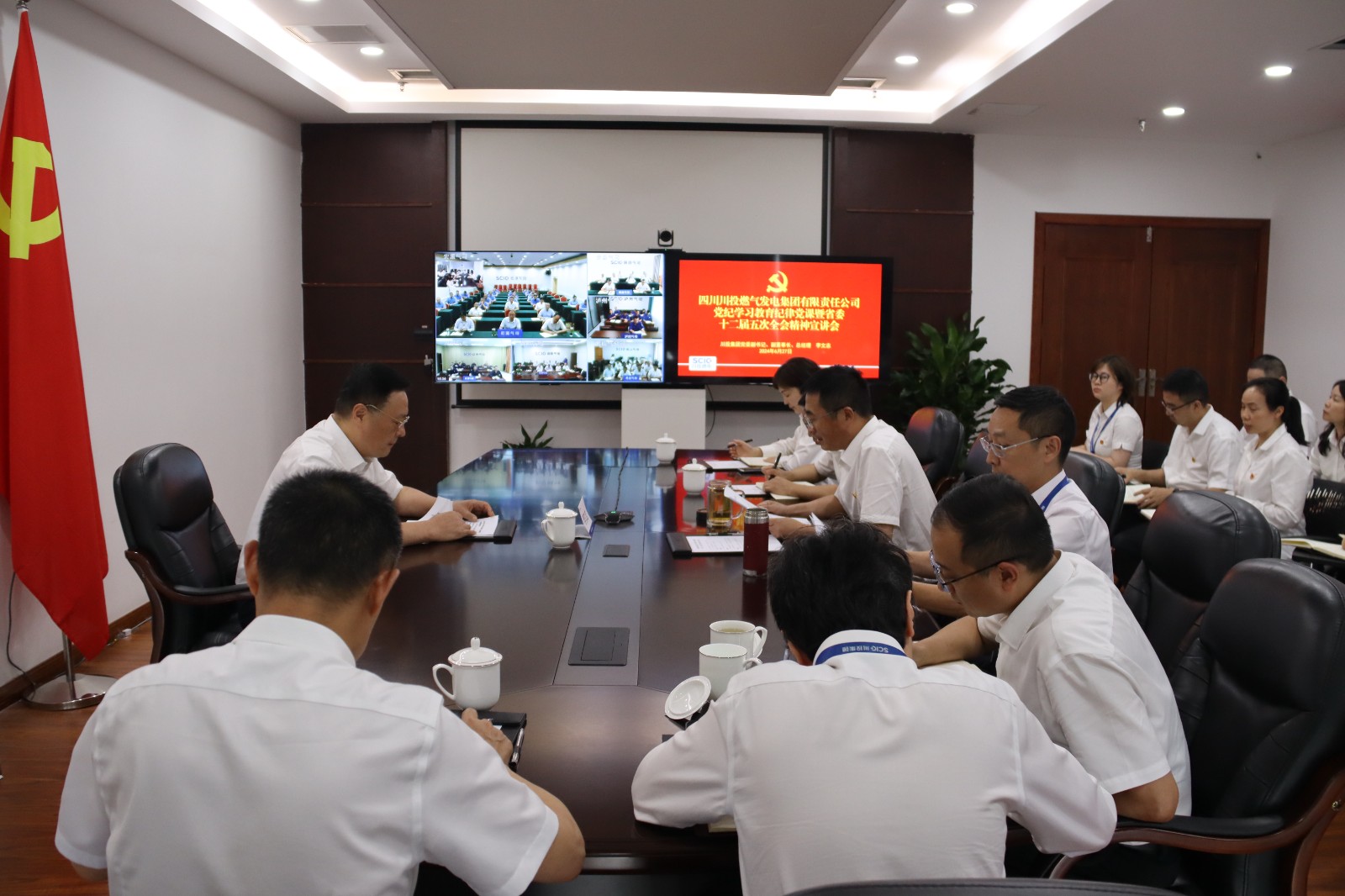 會(huì)議以“現(xiàn)場(chǎng)+視頻”形式召開,川投燃電本部及所屬企業(yè)黨員干部共計(jì)132人參加了此次黨紀(jì)學(xué)習(xí)教育專題黨課暨省委十二屆五次全會(huì)精神宣講會(huì)。