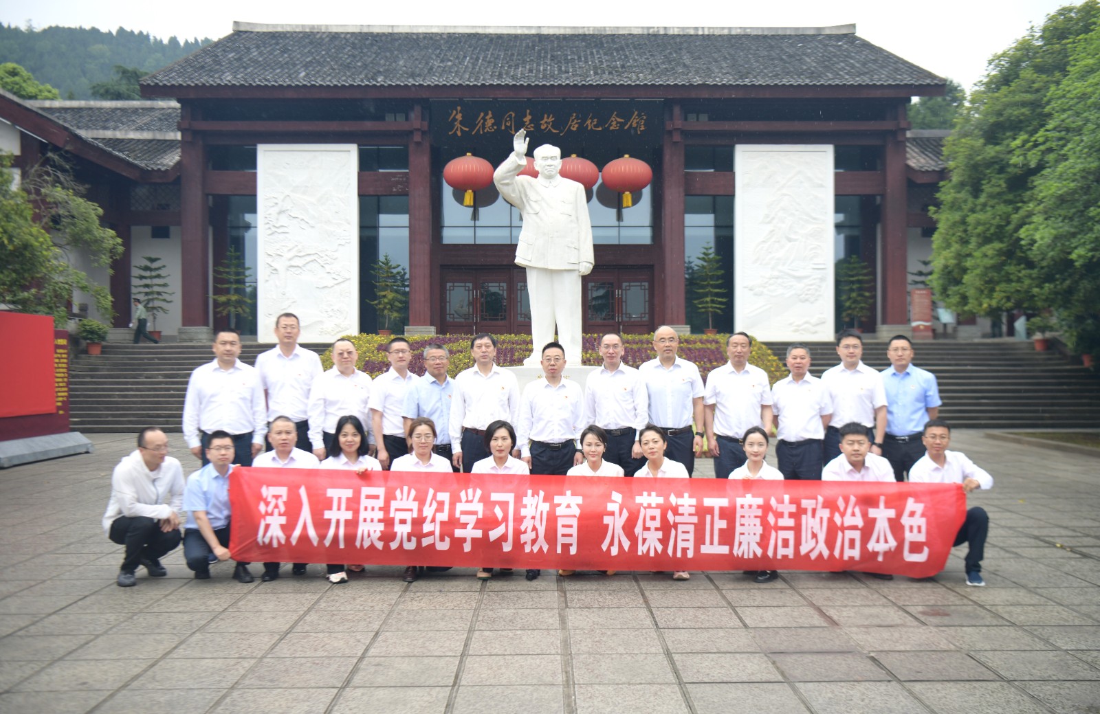 活動(dòng)當(dāng)天,雙方參學(xué)人員赴全國(guó)廉政教育基地、首批四川省廉潔文化基地朱德同志故居紀(jì)念館開(kāi)展警示教育暨國(guó)防教育活動(dòng)。在朱德同志雕像前,全體人員向朱德雕像敬獻(xiàn)花籃,鞠躬致敬,深切緬懷朱德同志為新中國(guó)的創(chuàng)立與建設(shè)所做出的卓著功勛,進(jìn)一步堅(jiān)定了為黨風(fēng)廉政建設(shè)和反腐敗斗爭(zhēng)奮斗終生的政治自覺(jué)、思想自覺(jué)和行動(dòng)自覺(jué)。