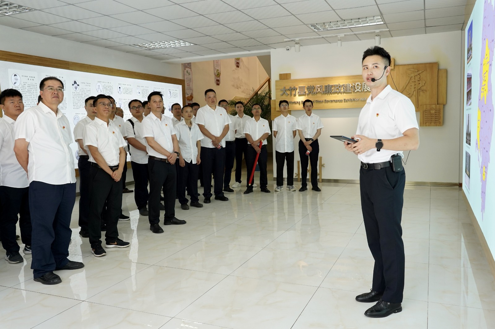 大竹竹廉館以“竹韻清風(fēng)·清廉大竹”為主題,分底樓序廳、二樓主廳兩部分。底樓序廳分主題形象墻、大竹清廉地圖及大竹廉吏三部分內(nèi)容;二樓主廳分高屋建瓴、英明論斷,櫛風(fēng)沐雨、砥礪前行,忠誠履職、輝煌歷程,崇廉尚潔、淳風(fēng)化俗,以案為鑒、知畏知止,調(diào)研基地、清廉名片,數(shù)字賦能、互動(dòng)體驗(yàn)7個(gè)篇章,集廉潔警示教育特色和數(shù)字化體驗(yàn)特色為一體,讓參觀者從全面從嚴(yán)治黨的時(shí)代答卷中探尋廉潔力量,從清廉大竹建設(shè)特別是大數(shù)據(jù)監(jiān)督中汲取廉潔智慧,從違紀(jì)違法典型案例中得到深刻警示,永葆共產(chǎn)黨人清正廉潔的政治本色,努力營造風(fēng)清氣正的良好政治生態(tài)。