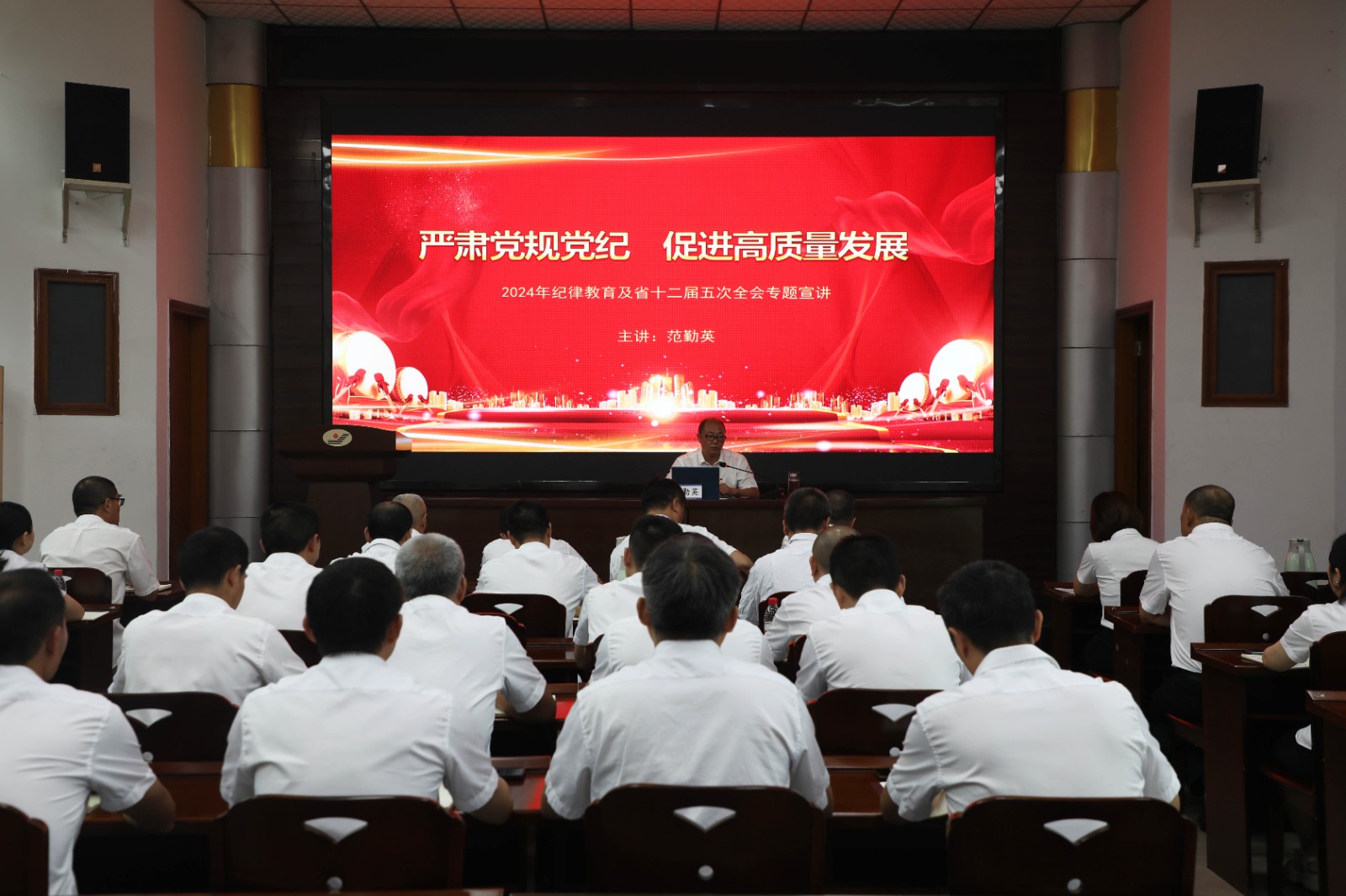 7月4日,嘉陽集團(tuán)黨委副書記、總經(jīng)理范勤英作《嚴(yán)肅黨規(guī)黨紀(jì),促進(jìn)高質(zhì)量發(fā)展》專題黨課宣講,機(jī)關(guān)第三黨支部、川投峨旅黨總支及所聯(lián)系隊(duì)站黨支部共60余人聆聽了宣講。