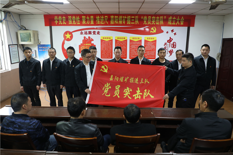 掘進(jìn)三隊(duì)黨支部書記秦剛在接過(guò)“黨員突擊隊(duì)”旗幟時(shí)表示:全隊(duì)上下務(wù)必堅(jiān)定信心,昂揚(yáng)斗志,發(fā)揚(yáng)嘉陽(yáng)人“特別能吃苦、特別能戰(zhàn)斗”的優(yōu)良作風(fēng),堅(jiān)定信心,戰(zhàn)勝困難,堅(jiān)決打贏這場(chǎng)“進(jìn)尺攻堅(jiān)戰(zhàn)”。黨群部部長(zhǎng)姚建軍希望掘三隊(duì)的黨員同志們要以黨史學(xué)習(xí)教育為契機(jī),提高思想認(rèn)識(shí),強(qiáng)化責(zé)任擔(dān)當(dāng),大力弘揚(yáng)煤礦“燃燒精神”,在急難險(xiǎn)重任務(wù)中彰顯黨員的先鋒模范作用,積極營(yíng)造“比、學(xué)、趕、超”的濃厚氛圍,以榜樣的力量帶動(dòng)全隊(duì)職工奮勇爭(zhēng)先,以黨建引領(lǐng)促進(jìn)安全生產(chǎn)任務(wù)的圓滿完成。