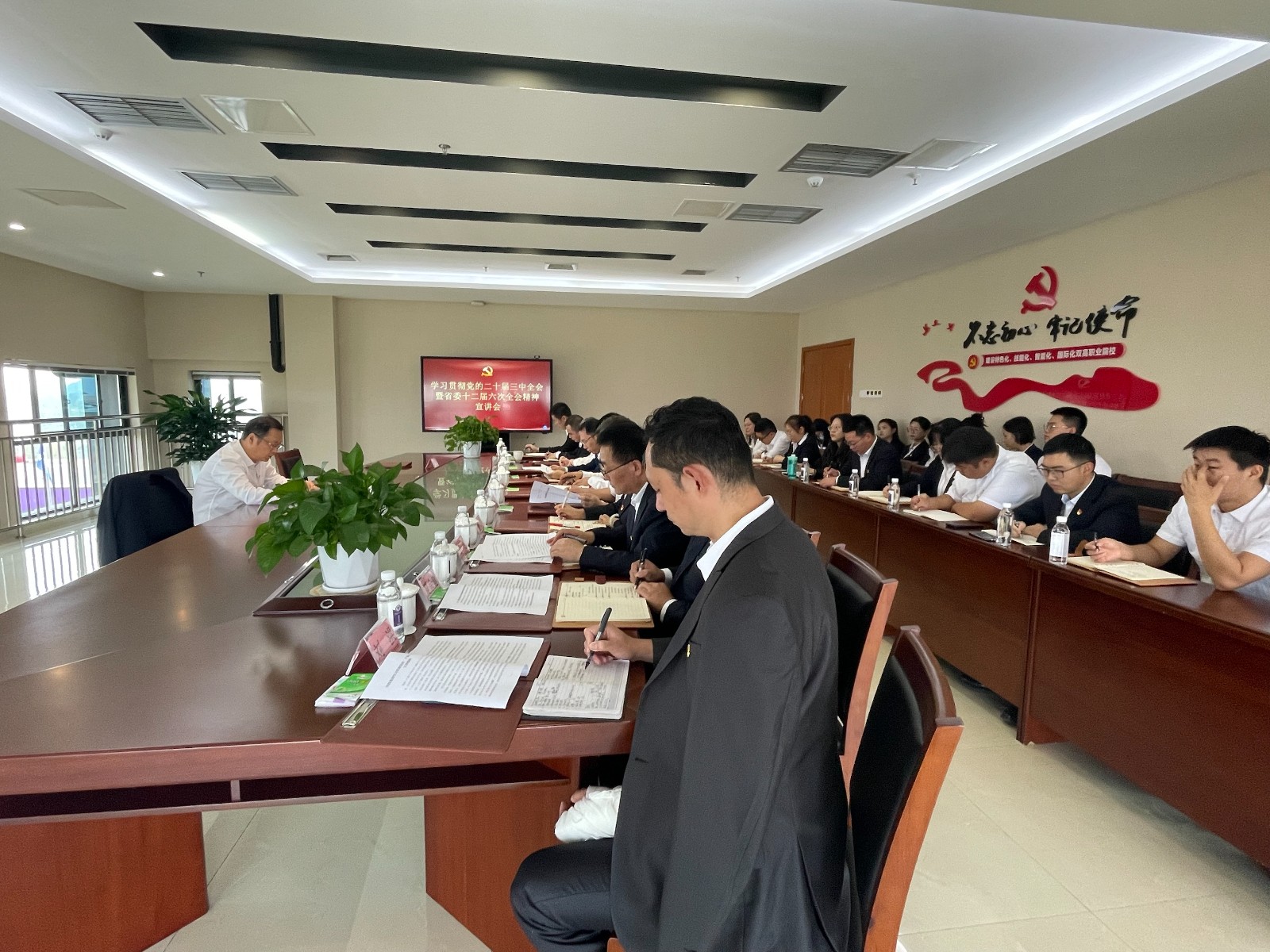 舒勇指出,學(xué)習(xí)貫徹好黨的二十屆三中全會(huì)精神和省委十二屆六次全會(huì)精神是當(dāng)前和今后一個(gè)時(shí)期的重大政治任務(wù)。他強(qiáng)調(diào),資陽(yáng)口腔職業(yè)學(xué)院全體黨員干部要結(jié)合上級(jí)有關(guān)要求,高標(biāo)準(zhǔn)高質(zhì)量推進(jìn)學(xué)習(xí)宣傳貫徹各項(xiàng)工作,在學(xué)院掀起學(xué)習(xí)宣傳貫徹全會(huì)精神的熱潮,著力營(yíng)造進(jìn)一步全面深化改革的濃厚氛圍。要圍繞全會(huì)提出的新思想、新觀點(diǎn)、新論斷,結(jié)合學(xué)院五年發(fā)展歷程,全面總結(jié)經(jīng)驗(yàn)教訓(xùn),牢牢把握學(xué)院事業(yè)改革的關(guān)鍵期、發(fā)展的機(jī)遇期,聚焦堅(jiān)持和加強(qiáng)黨的領(lǐng)導(dǎo),聚焦服務(wù)經(jīng)濟(jì)社會(huì)發(fā)展,深入思考學(xué)校高質(zhì)量發(fā)展的新路徑、新舉措。要聚焦合格性評(píng)估、內(nèi)涵式發(fā)展、校園安全和意識(shí)形態(tài)安全等重點(diǎn)工作,鉚足“干”的勁頭、激發(fā)“創(chuàng)”的精神、保持“拼”的狀態(tài),用學(xué)習(xí)成果推動(dòng)各項(xiàng)事業(yè)出成效上臺(tái)階。