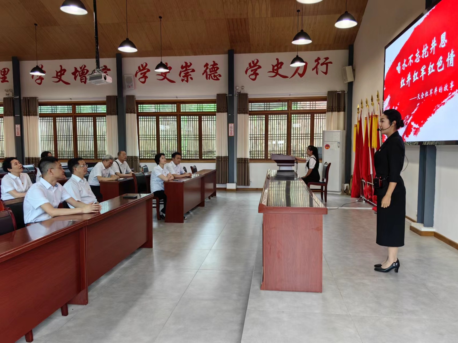 結(jié)合主題教育,支部精心設(shè)置了研學(xué)路線和內(nèi)容,采用理論學(xué)習(xí)和實(shí)地研學(xué)相結(jié)合方式,全體黨員認(rèn)真學(xué)習(xí)“牢牢把握主題教育的總要求”微視頻,面向黨旗莊嚴(yán)宣誓、重溫入黨誓詞,現(xiàn)場聆聽“紅軍井”特色微黨課;先后參觀了紅軍紀(jì)念館中的紅軍長征天全展廳、徙都往事等展廳,紅軍村中紅四方面軍總部、紅軍總政治部、紅軍總醫(yī)院等革命舊址,通過現(xiàn)場教學(xué)、歷史圖片、文獻(xiàn)資料等,了解了紅軍在天全的重大戰(zhàn)斗和歷史事件,追憶黨的偉大革命歷史,感受黨創(chuàng)新理論的磅礴真理,進(jìn)一步凝聚思想共識、激發(fā)董監(jiān)力量。