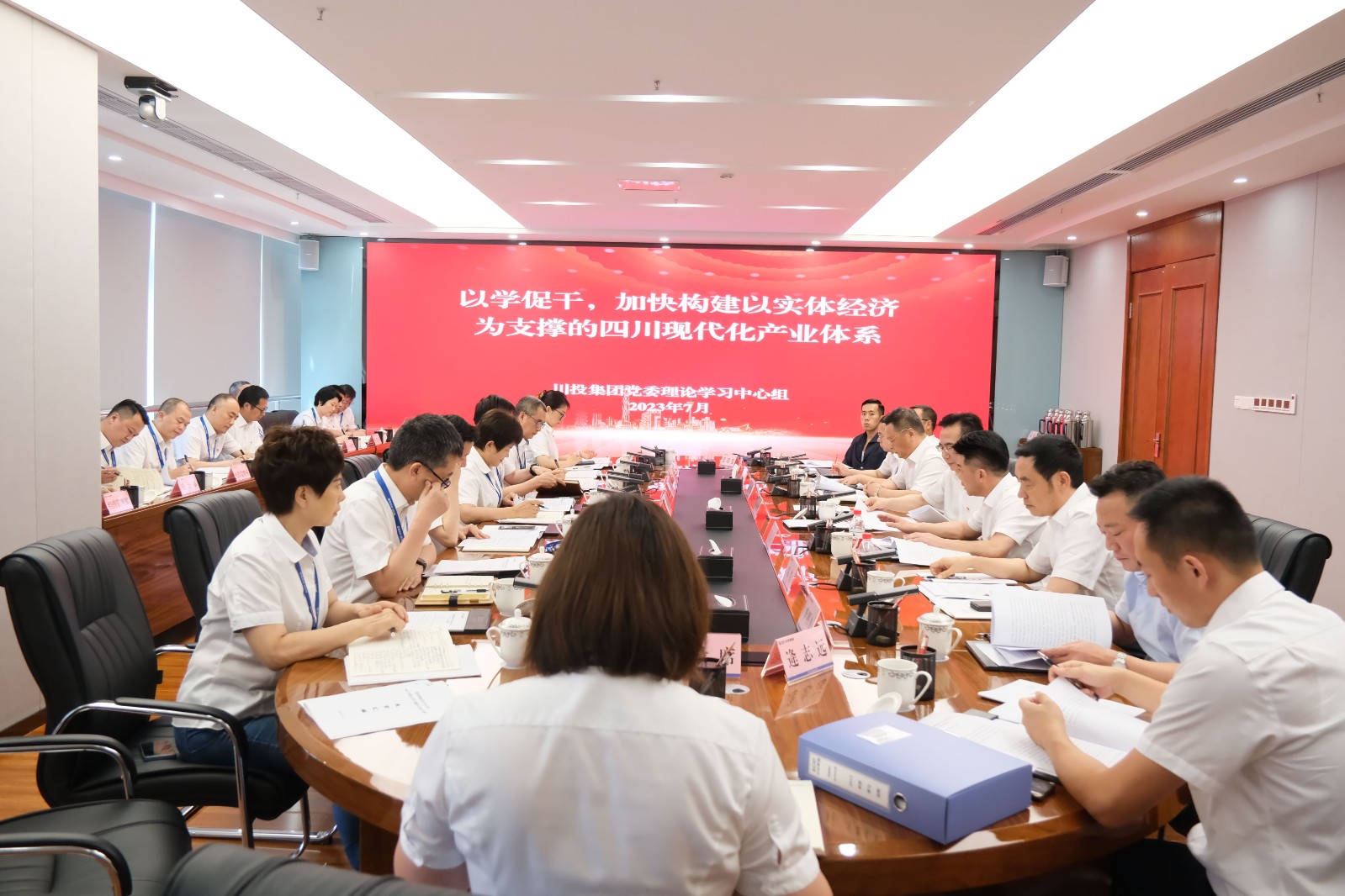 7月21日,川投集團(tuán)黨委召開理論學(xué)習(xí)中心組2023年第6次學(xué)習(xí)(擴(kuò)大)會(huì),圍繞“以學(xué)促干,加快構(gòu)建以實(shí)體經(jīng)濟(jì)為支撐的四川現(xiàn)代化產(chǎn)業(yè)體系”開展專題研討。省國(guó)資委二級(jí)巡視員符定平,省國(guó)資委宣傳工作處、企業(yè)領(lǐng)導(dǎo)人員管理處相關(guān)同志到會(huì)旁聽督導(dǎo)。集團(tuán)黨委書記、董事長(zhǎng)吳曉曦主持會(huì)議,集團(tuán)黨委理論學(xué)習(xí)中心組成員出席會(huì)議,集團(tuán)總經(jīng)理助理、各部門負(fù)責(zé)人列席會(huì)議。